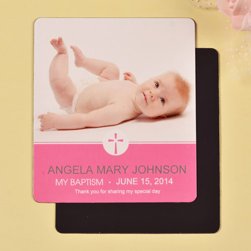 Print 3.5X4 Delicate Pink Baptism Photo Fridge Magnets