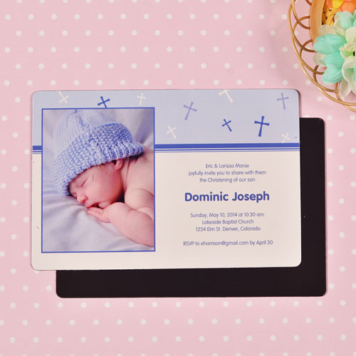 Personalized 4x6 Large Baby Boy Baptism Cross Photo Fridge Magnets