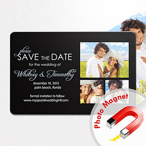 Personalized wedding magnets allow you to make a true statement using one or more pictures that define your wedding theme, styles or express whatever is in your heart. Easily design your own wedding magnets using our online editing tool. Our handy design tools give you fully control to customize a magnet to your exact specifications. And best of all, you can preview your design online! You can even add the finishing touch with coordinated wedding photo cards.