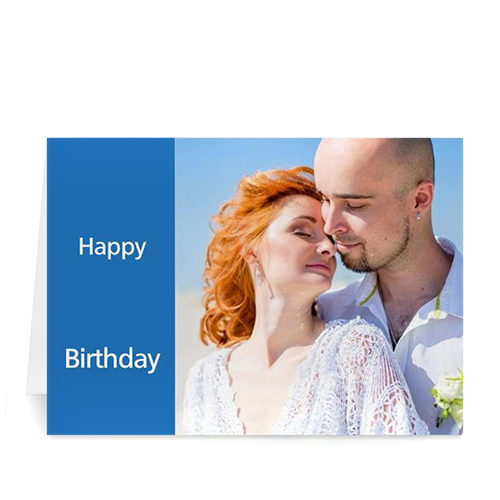 Custom Classic Blue Photo Birthday Cards, 5X7 Folded Modern