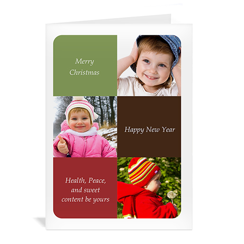 Have a plan for a Christmas Eve dinner party that need holiday invitation that fit your style? Take a look at this popular elegant design photo collage Christmas holiday invites. You can easily create your own greeting cards with pictures using our online editing tools. 5x7 folded photo card, with its gloss finish on front and back give your photos sharper and more vivid colors. Inside of the card is matte so you can write on it. You can easily design all four sides of your cards with text and pictures using our online editing tools. Before placing order, you can view an instant full colour preview of your personalization so that to know exactly how your cards will look like. Each custom greeting card comes with an envelope for mailing. Sold individually, fast turnaround and no minimum order required. Cheap photo cards work great as Christmas cards for colleagues, family members and friends.