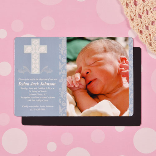 Personalized Framed Cross Boy Baptism 4x6 Large Photo Magnets