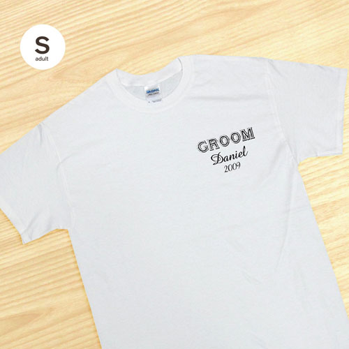 Customizable groom t-shirts will do the talking for you. Custom wedding t-shirts are fun for the entire wedding party. Personalize it with the name of groom.