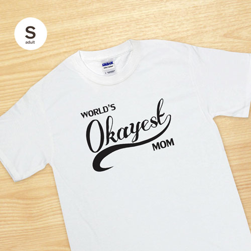 Okayest Personalized 100% Preshrink Cotton White T-Shirt Size Adult Small for mom mother's day gift