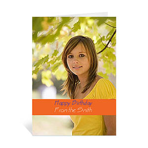Custom Classic Orange Photo Birthday Cards, 5X7 Portrait Folded Causal