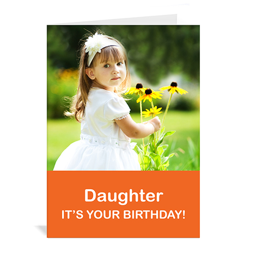 Custom Classic Orange Photo Birthday Cards, 5X7 Portrait Folded Simple