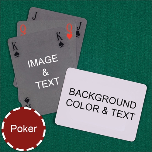 Want to promote and advertise your company with unique promotional gifts or special business giveaways? These high quality custom playing cards will be one of the best ways to achieve your marketing goals. Made of casino quality paper, pack of 54 standard poker size cards are fully customizable on both sides. You can easily design your card decks from scratch by choosing the blank template or to select one of our professionally-designed business card templates. Simply upload your business logo, digital pictures, your advertising message, business logo, photos, and any extra business information that you may want to add and use our drag and drop tools to add elements to the template. Before placing orders, you will be able to see a full color preview of your personalization online and in real time to make sure every detail is in place. Each full color print playing cards comes with a free clear plastic box for presentation. Cheap business playing cards work great as trade show giveaways, or a promotional gifts to your customers or gifts to business partners.