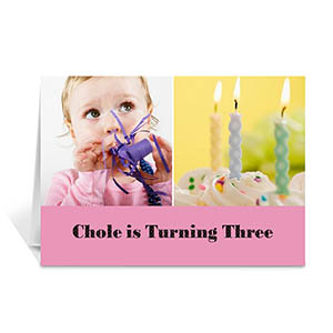 Personalized Two Collage Birthday Photo Cards, 5X7 Simple Pink