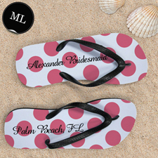 Create My Own Custom Name Bright Pink Polka Dot ,Women's Medium Flip Flop Sandals
