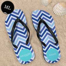 Create My Own Aqua Chevron Pattern With Personalized Name, Women Medium Flip Flop Sandals
