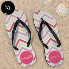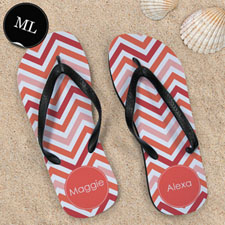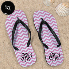 Create My Own Pink Chevron Pattern With Personalized Name, Women Medium Flip Flop Sandals