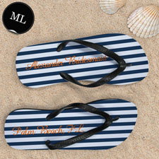 Design My Own Customizable Nautical Blue Stripes ,Men's Medium Flip Flop Sandals