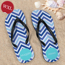 Design My Own Aqua Chevron Pattern With Personalized Name, Kid's Medium Flip Flops