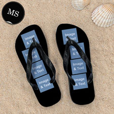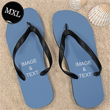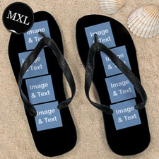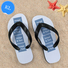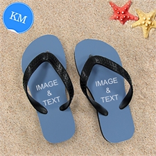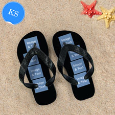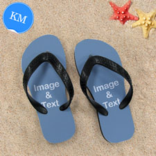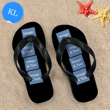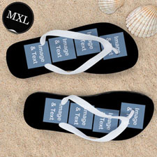 Custom Imprint Flip Flops (One Image) Black Straps, Men Medium