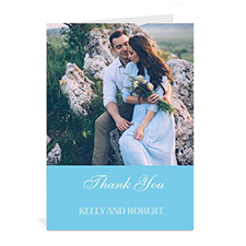 Personalized Baby Blue Wedding Photo Cards, 5X7 Portrait Folded