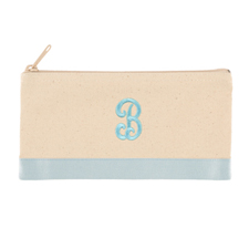 2 Tone Aqua Personalized Embroidered One Initial Small (Single Side) Cosmetic Bag