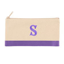Embroidered One Initial Natural Purple Zip Bag (7.5 X 9 Inch)