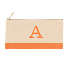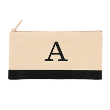 Embroidered One Initial Natural Black Zip Bag (7.5 X 9 Inch)