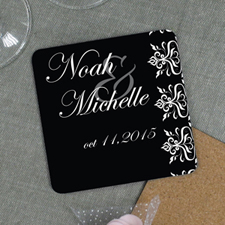 Floral Pattern Personalized Wedding Cork Coaster Black