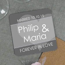 Forever In Love Personalized Wedding Cork Coaster Grey