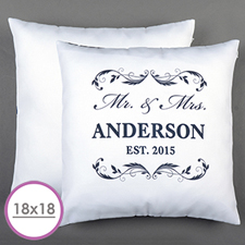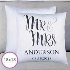 Mr. & Mrs. Personalized Pillow White 18X18 Cushion (No Insert)