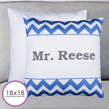 18 X 18 Blue Chevron Personalized Pillow Cushion (No Insert)