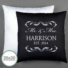 Mr. & Mrs. Personalized Pillow Black 20X20 Cushion (No Insert)