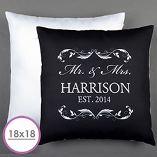 Mr. & Mrs. Personalized Pillow Black 18X18 Cushion (No Insert)