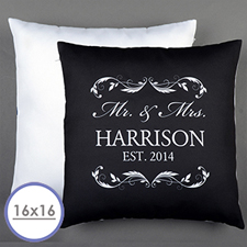 Mr. & Mrs. Personalized Black Pillow Cushion (No Insert) 16 Inch