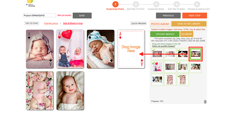 Customize Card Fronts - Upload and add photo(s)
