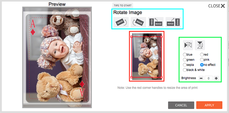 NOTE: If the image size, resolution or format is below our minimum requirements, you will receive an error message. Please rescan your image at a higher resolution or select another image. Please refer to our Image Requirements for more information.