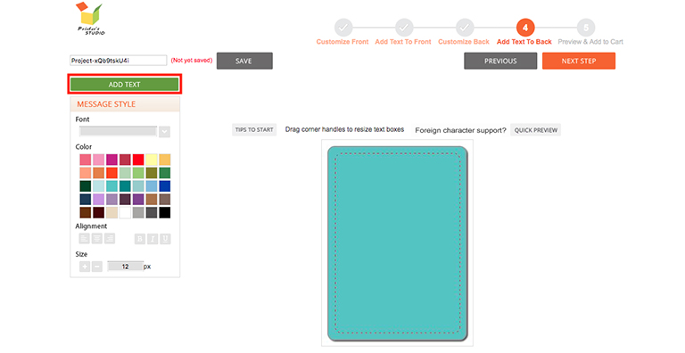 You will see a preview of your personalized item at this step. Click Previous button at the bottom of the page if you need to make any changes to your design.